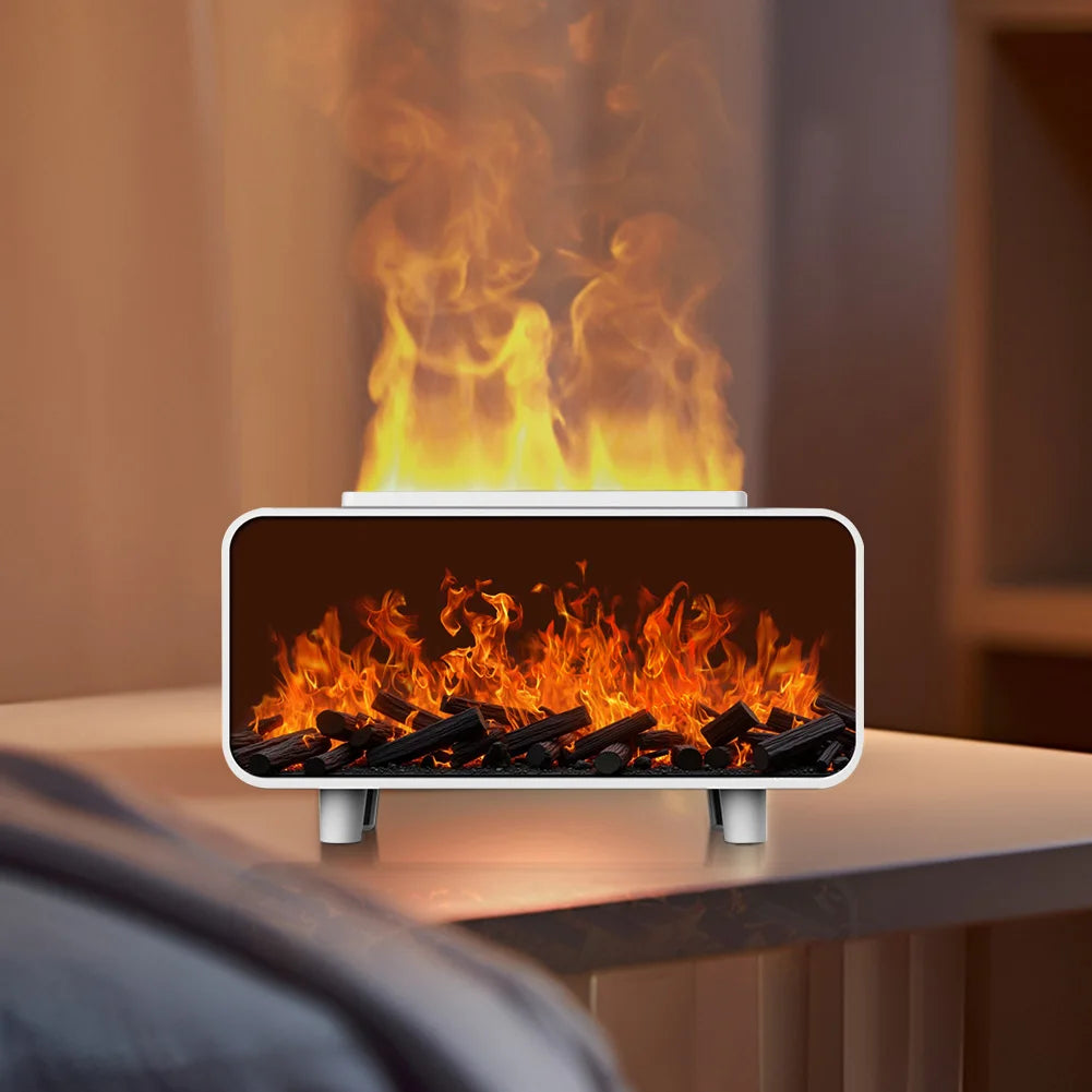 The 7-Colour Flame Aroma Diffuser & Humidifier combines ultrasonic mist technology with a realistic fireplace-style flame light effect. Designed for bedrooms, living rooms, offices or yoga spaces, the diffuser releases fine mist while LED lighting creates a soft flame-inspired ambience.