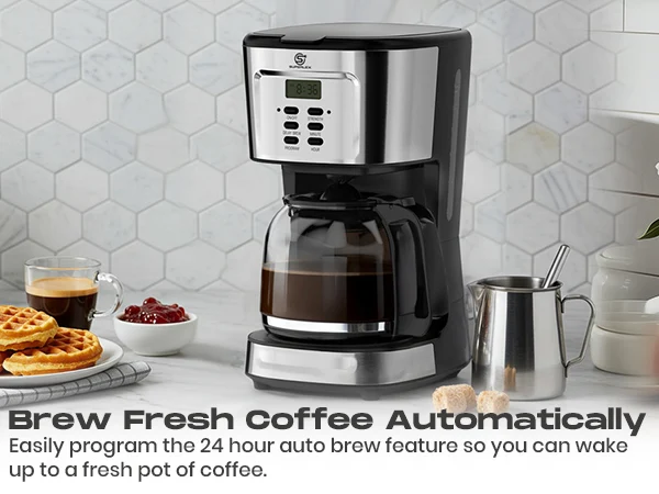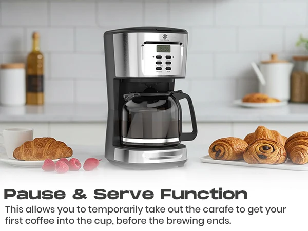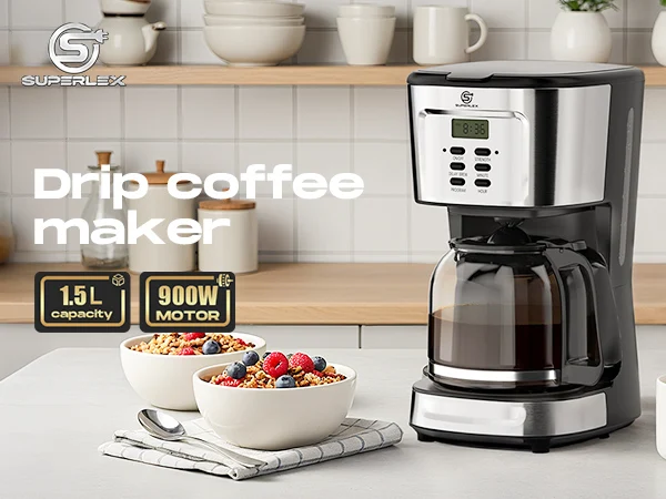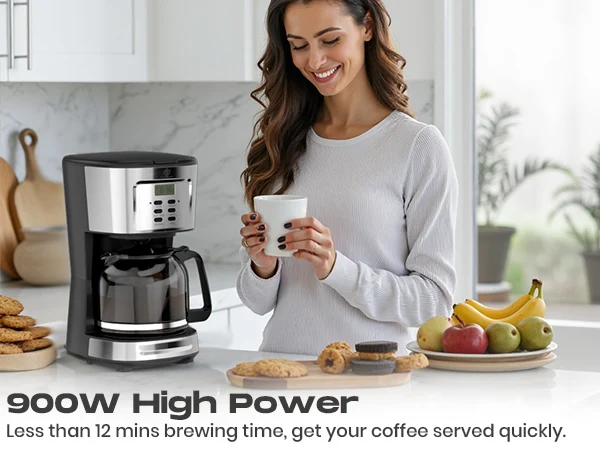 Powered by a 900W heating system, it maintains consistent brewing temperature for balanced extraction. The programmable delay brew function allows you to schedule coffee preparation in advance, while the automatic shut-off feature enhances safety and energy efficiency.