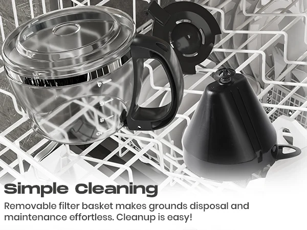 Removable glass jar and funnel are dishwasher safe for convenient maintenance.
