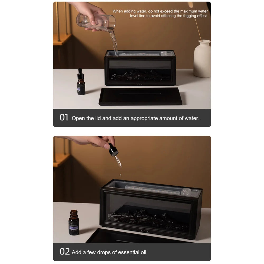 Colourful Flame Fireplace Aroma Diffuser – Essential Oil Humidifier with Remote Control
