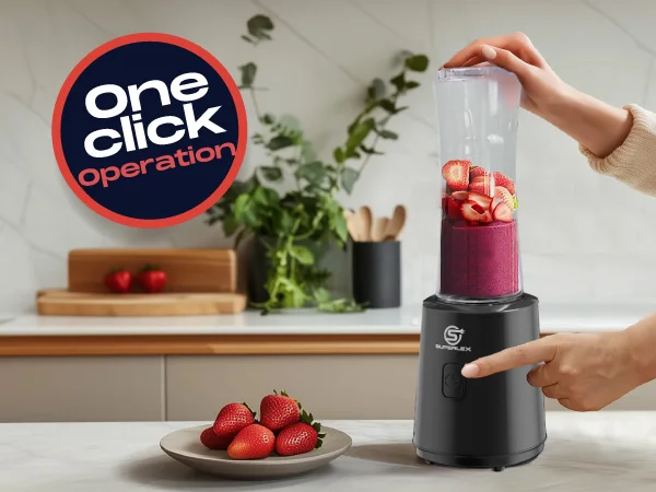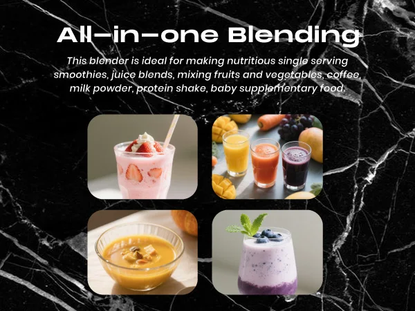 With a 4000mAh rechargeable battery and simple push-button control, it delivers easy one-touch operation. The 600ml capacity bottle is suitable for personal drinks, protein shakes, and smoothies. Its detachable structure allows quick cleaning after use.