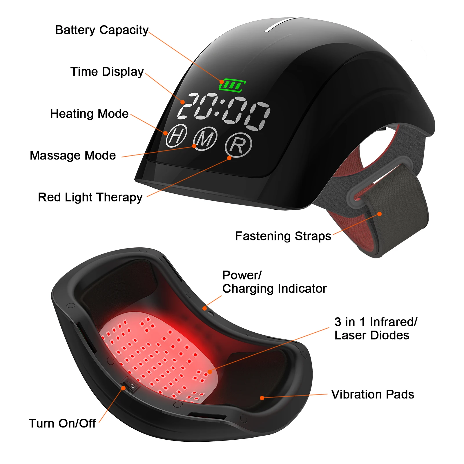 The Knee Laser Therapy Device is a wireless knee massager designed to provide targeted light therapy, adjustable heat, and vibration functions for daily comfort and relaxation. Featuring 70 laser diodes with multiple wavelengths (630nm / 660nm / 880nm), this device delivers focused light exposure combined with gentle vibration and heat therapy.