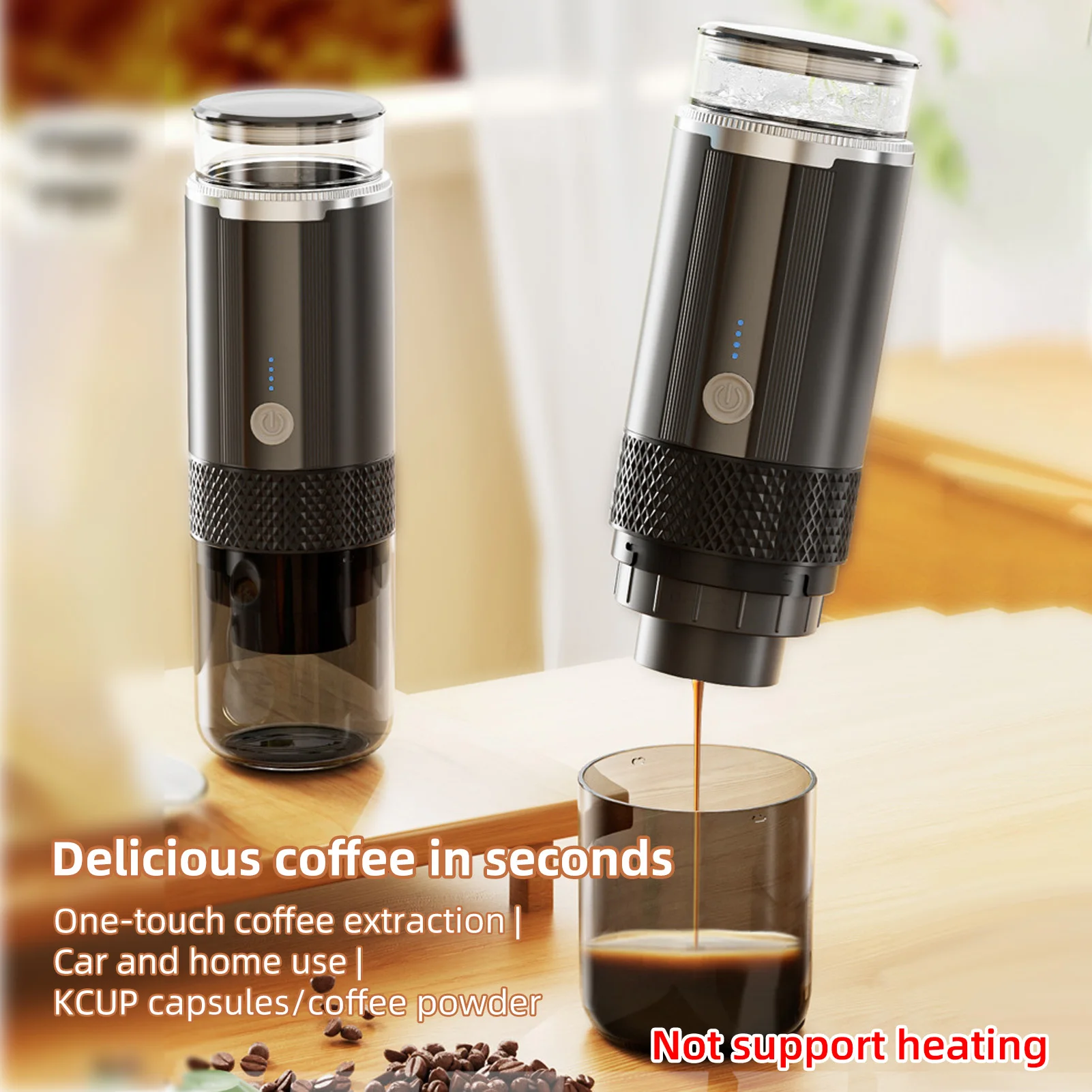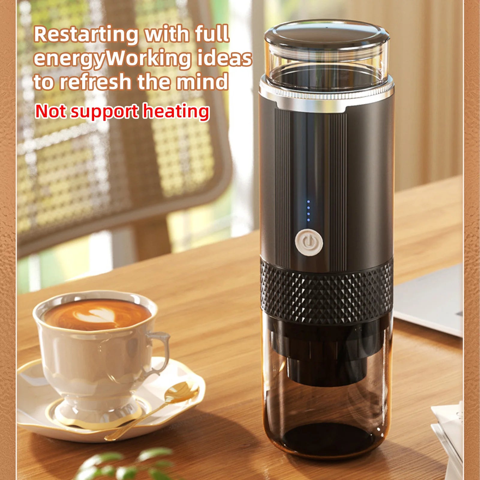 The Portable Electric Espresso Coffee Machine is a cordless, rechargeable coffee maker designed for travel, car use, office, and home convenience. With one-button operation and four power indicator lights, this handheld espresso machine delivers quick brewing wherever you go.